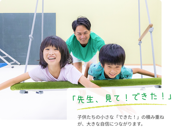 感覚統合理論に基づいた遊具を活用し、一人ひとりの子どもが「自分でできた!」と