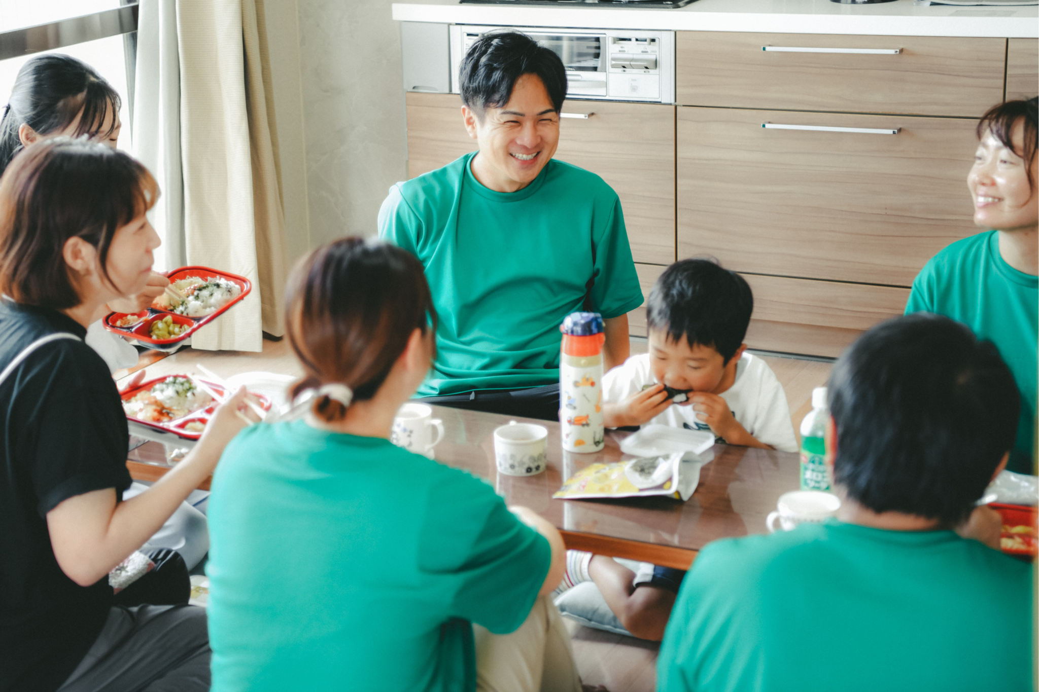 スタッフ同士の交流や情報共有の貴重な時間。手作りの社食を囲みながら、リラックスした雰囲気でコミュニケーションを取ります。
